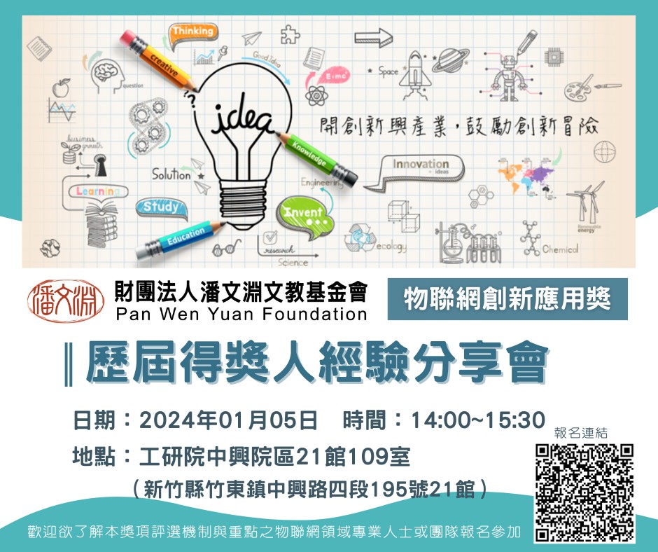 敬邀參加「物聯網創新應用獎」歷屆得獎人經驗分享會(2024/01/05--新竹)